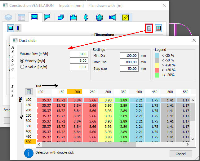 AX3000 is able to calculate a duct cross sections. This can be made in several versions with corresponding values. According to fitting, the cross section 'a' can only be active. (e.g. elbow with variable cross section).